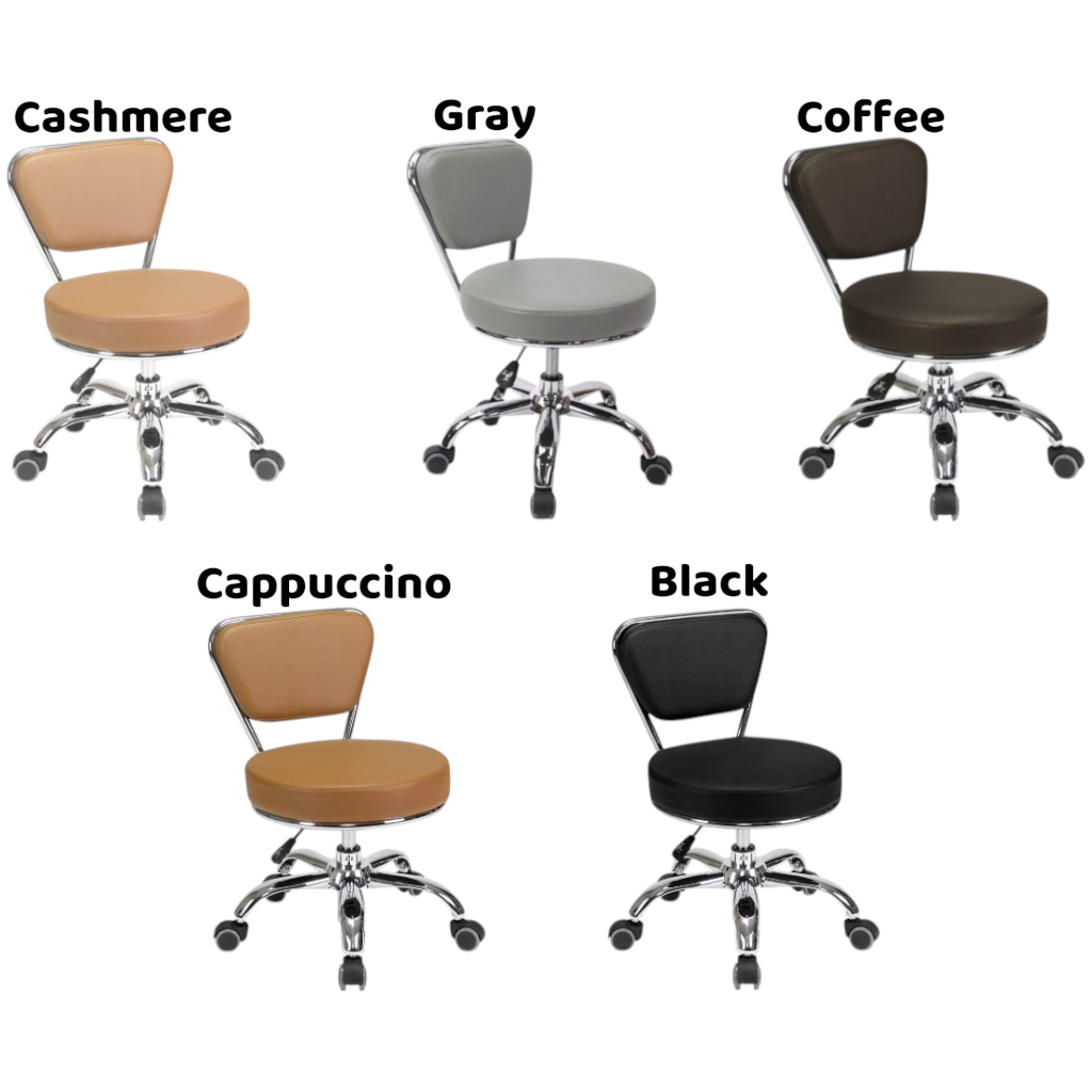 Pedicure Stool is an elegant and sophisticated pedicure stool.  Its great for higher end salons and comes available in popular colors. Additionally, its upholstered with soft acetone resistant vinyl and padded memory foam back and seat cushion for superior comfort. It comes finished with a polished chrome base.